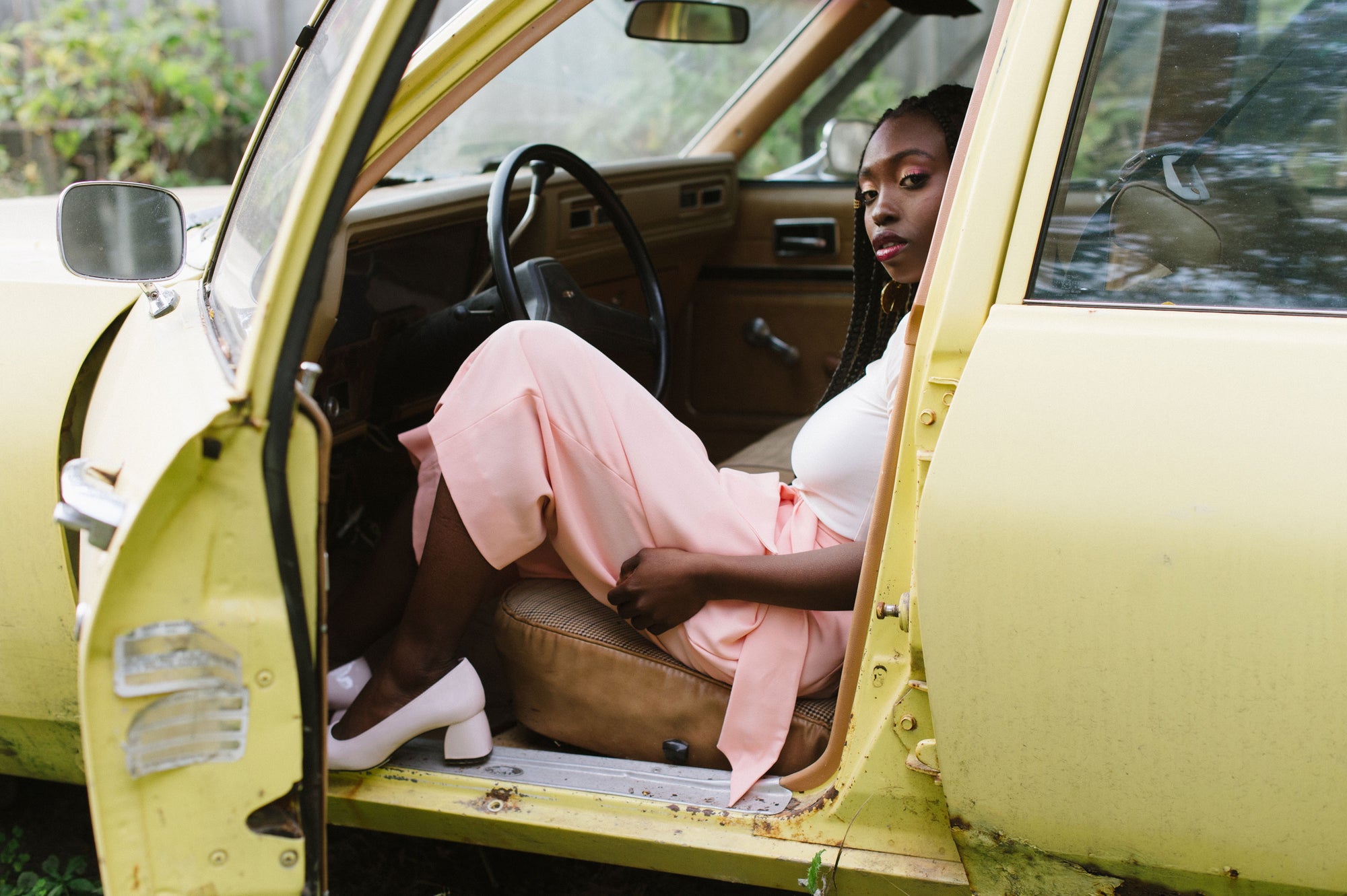 Mid weight fabric with high drape: Crepe, soft linen, tencel, rayon blends.